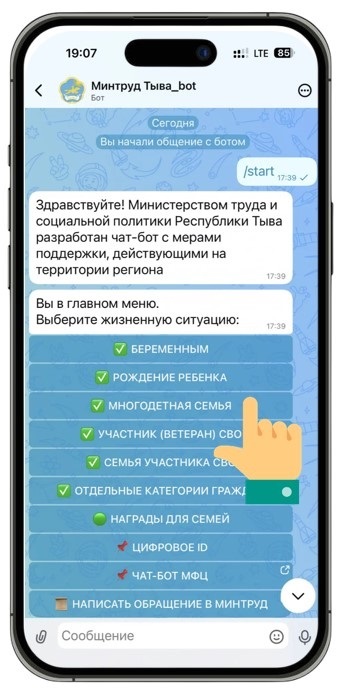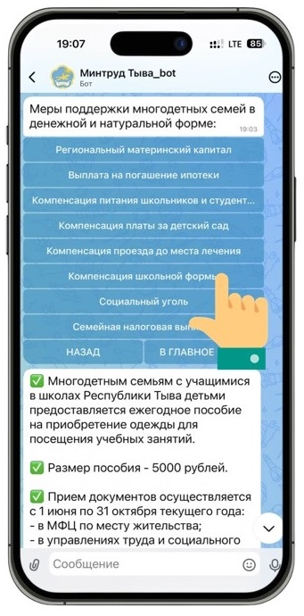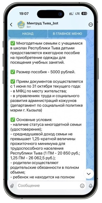 Дорогие земляки! Министерство труда и социальной политики Республики Тыва запускает удобный цифровой сервис — чат-бот, который станет вашим персональным помощником в мире социальных выплат, льгот и государственных услуг.